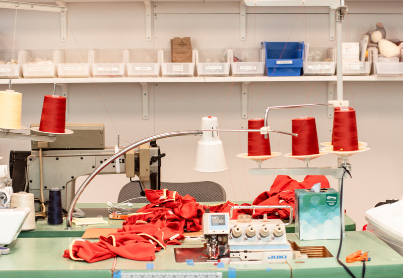 Of course, the closest to our hearts is our local production setup here in Brooklyn. We have two talented resident seamstresses, plus a team of industrious workshop elves who help out when there’s a lot to be done. And Jane (Hazel Village’s founder) could wax poetic about all our sewing machines, which she loves, but that is a story for another time.